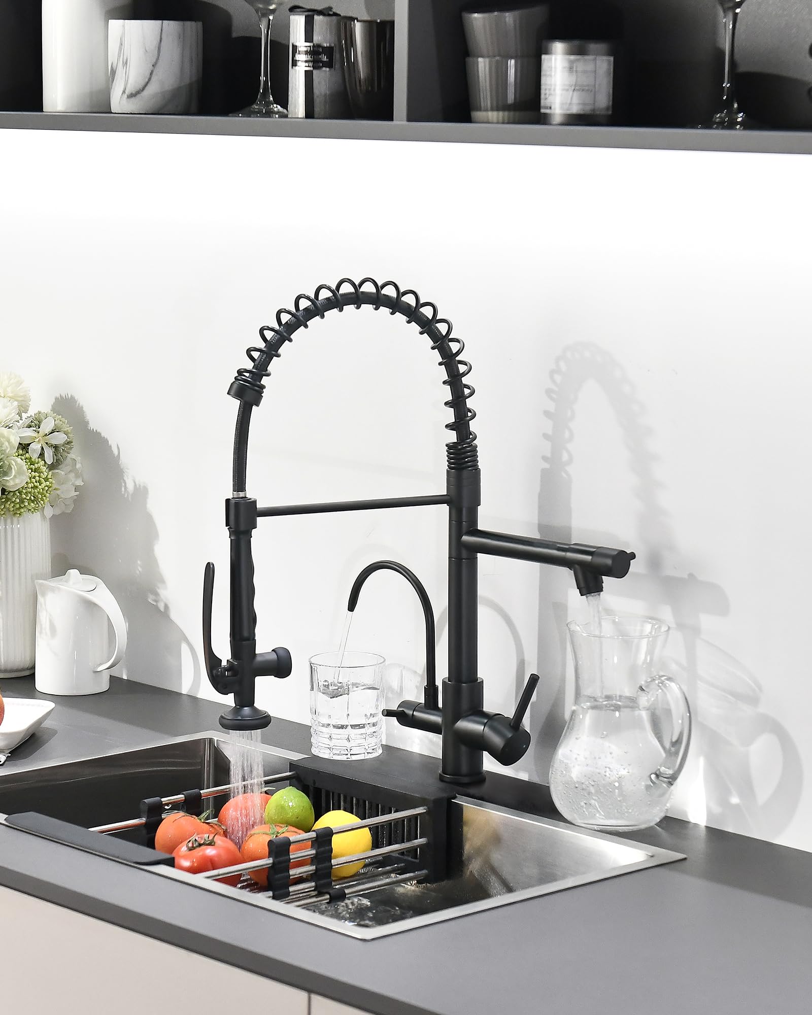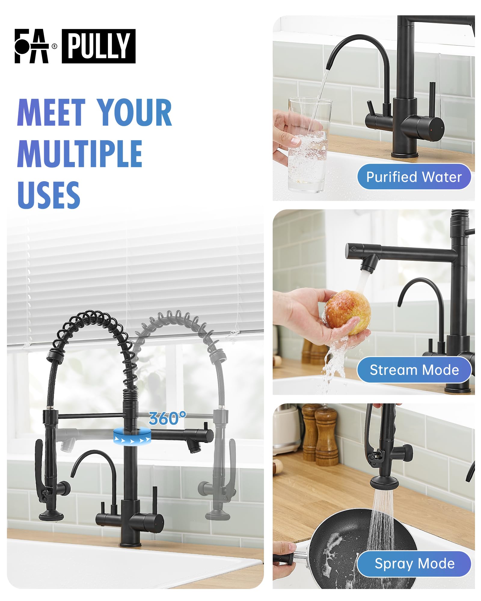 - Faucet Upgrade: Pure Water Function Added - Fapully 3 in 1 (3 way) faucet with water filter. It combines hot water, cold water, and an RO FAUCET FILTER in one. Perfectly compatible with under-sink filtration systems, it comes with 1/4" and 3/8" adapters for seamless connection to your filtration system. Elevate your kitchen and enjoy healthier drinking water effortlessly.
