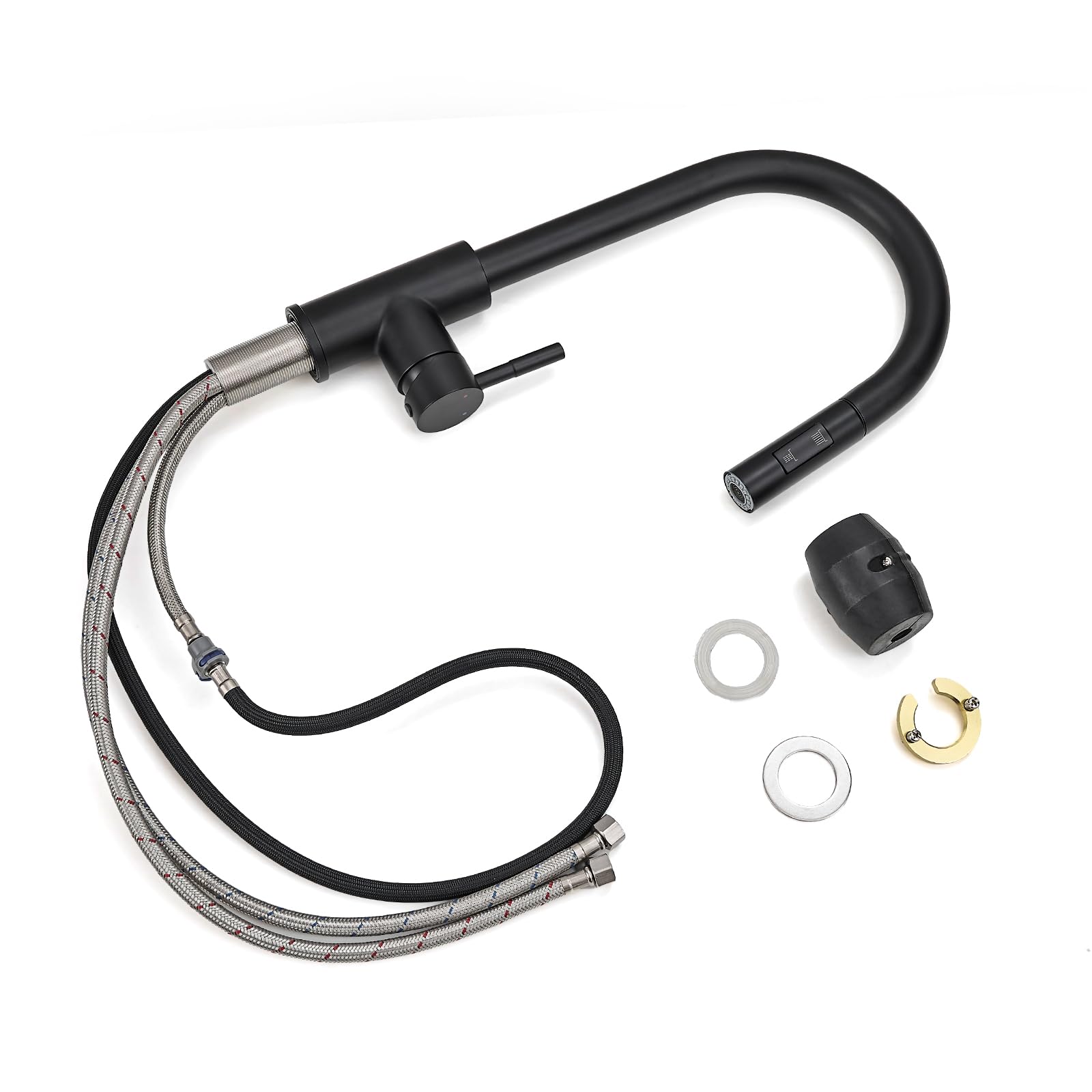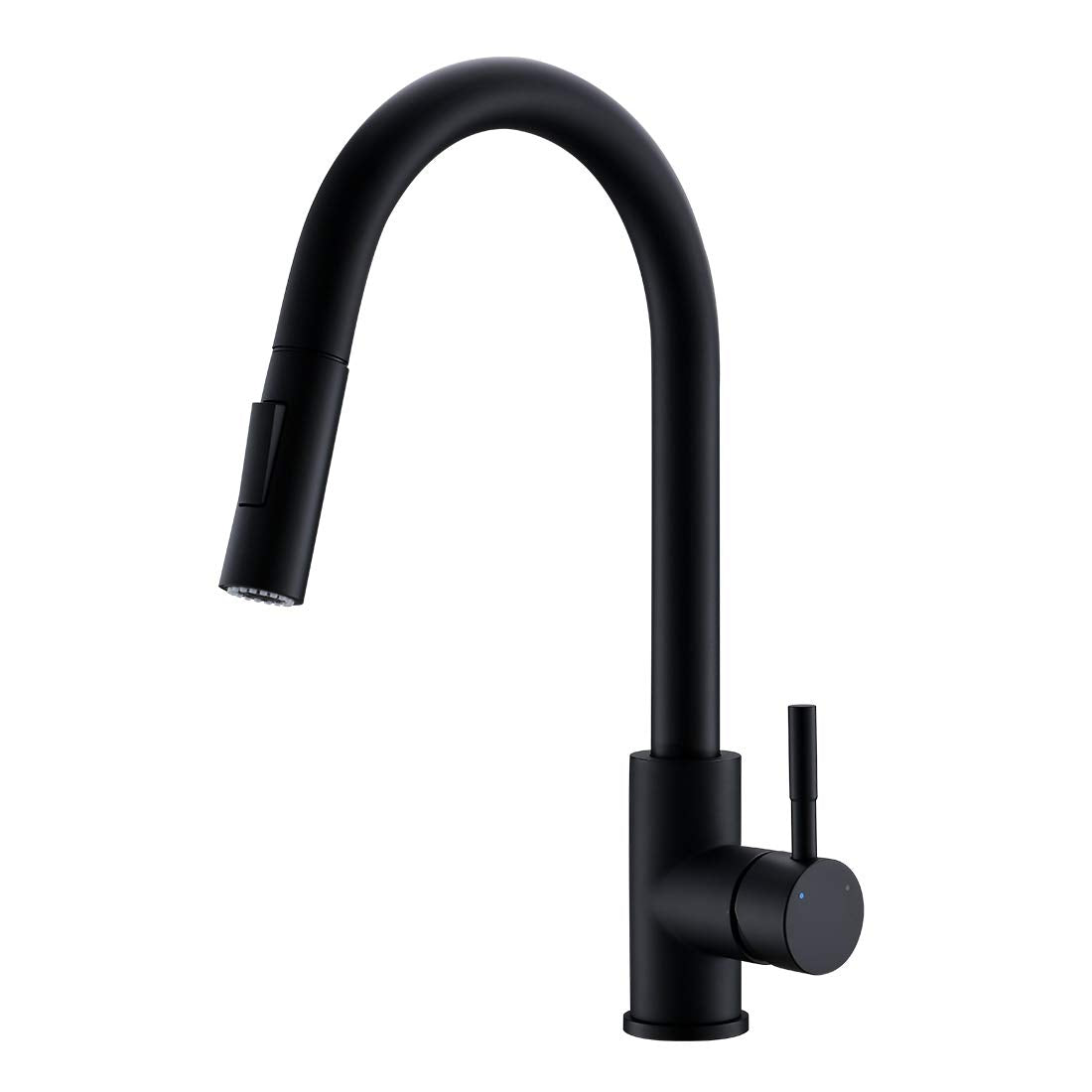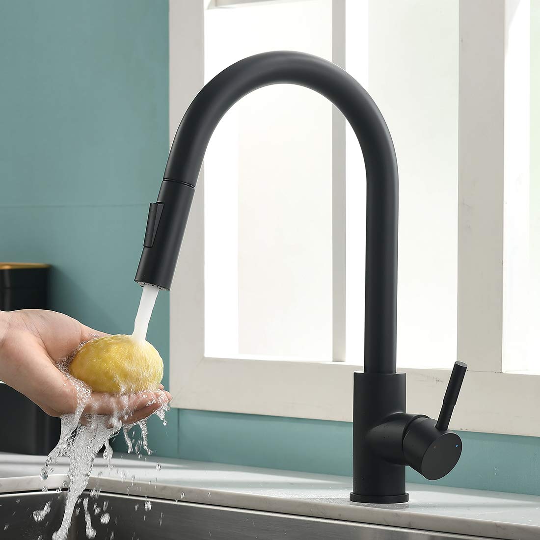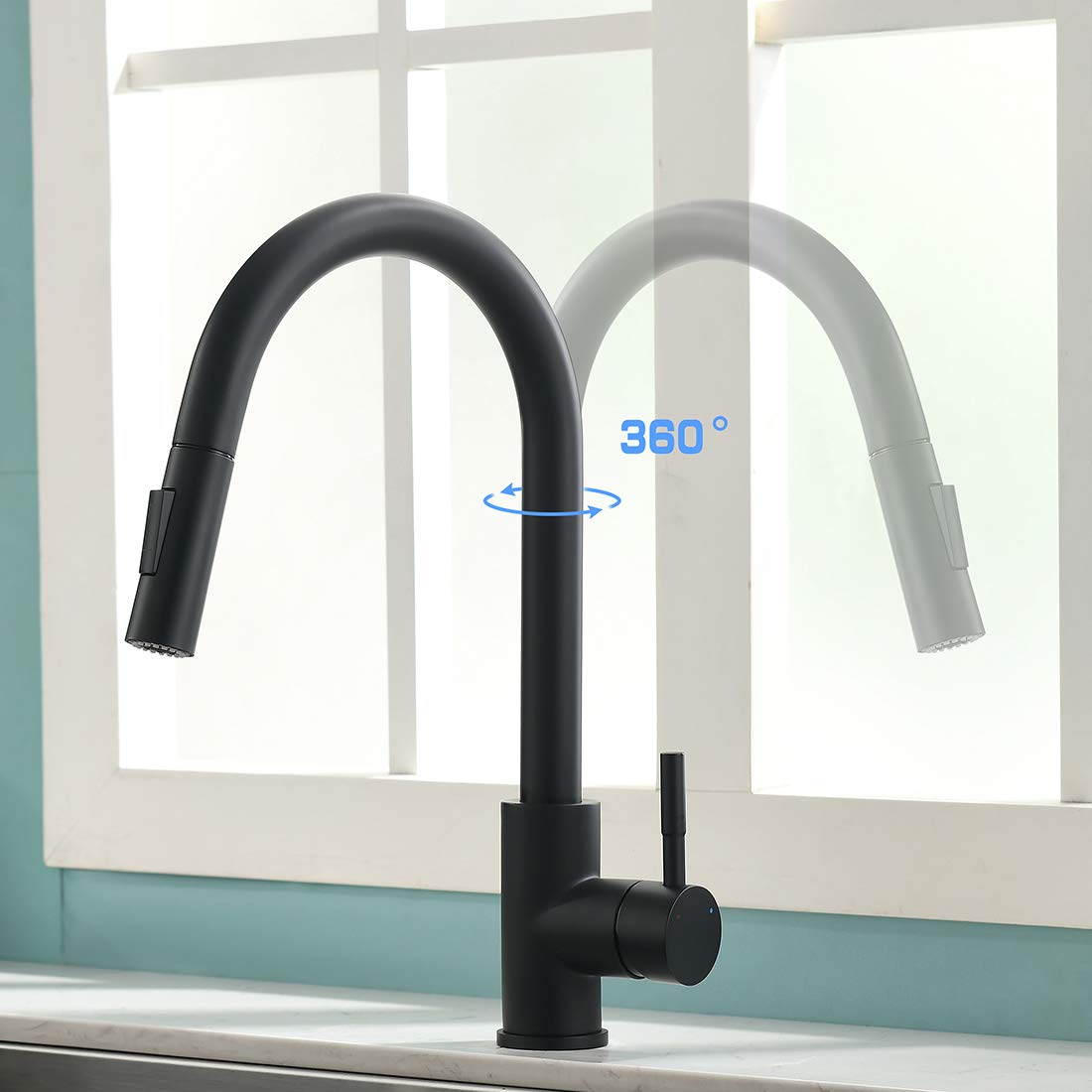 - Pull Out Faucet: High arc 360-degree swivel spout for full sink access and superior clearance, pull-out sprayer ensures high pressure while still saving on water