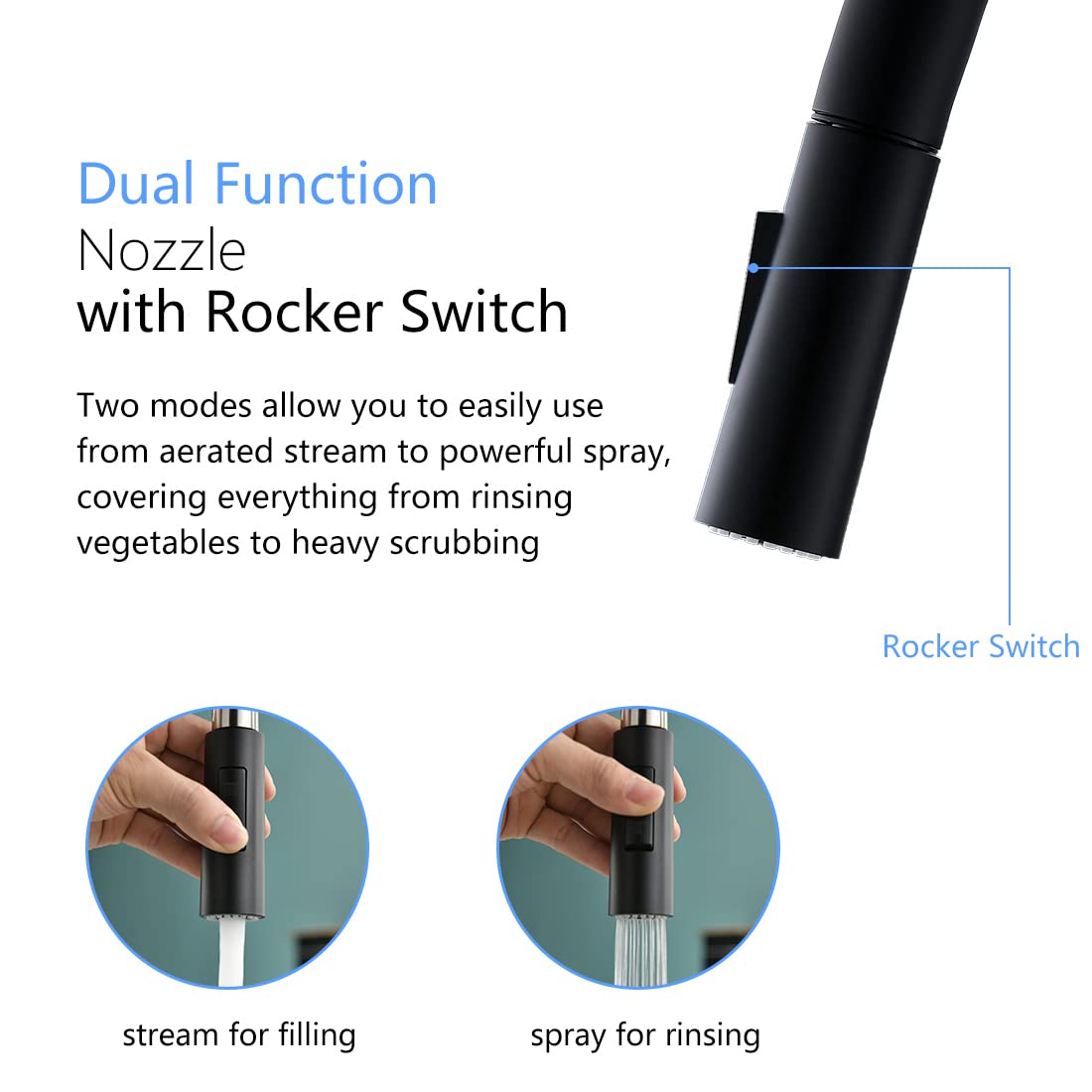- Easy Operation: Single handle controls water temperature and flow volume easily, sprayer head always retracts back to spout after each use